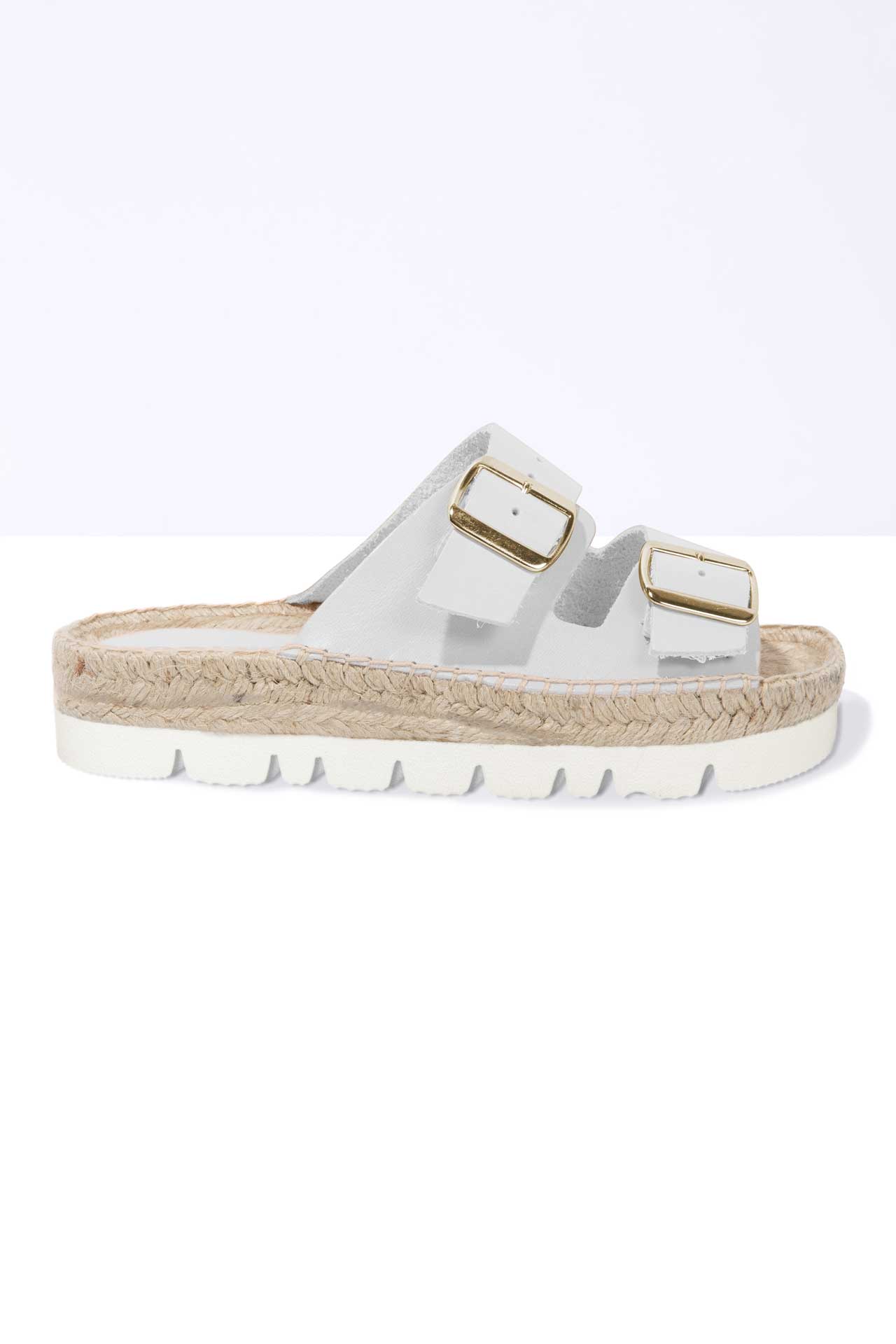 BLANCO NEVA - Strappy Espadrille Flatform Sliders in White Leather with Buckles